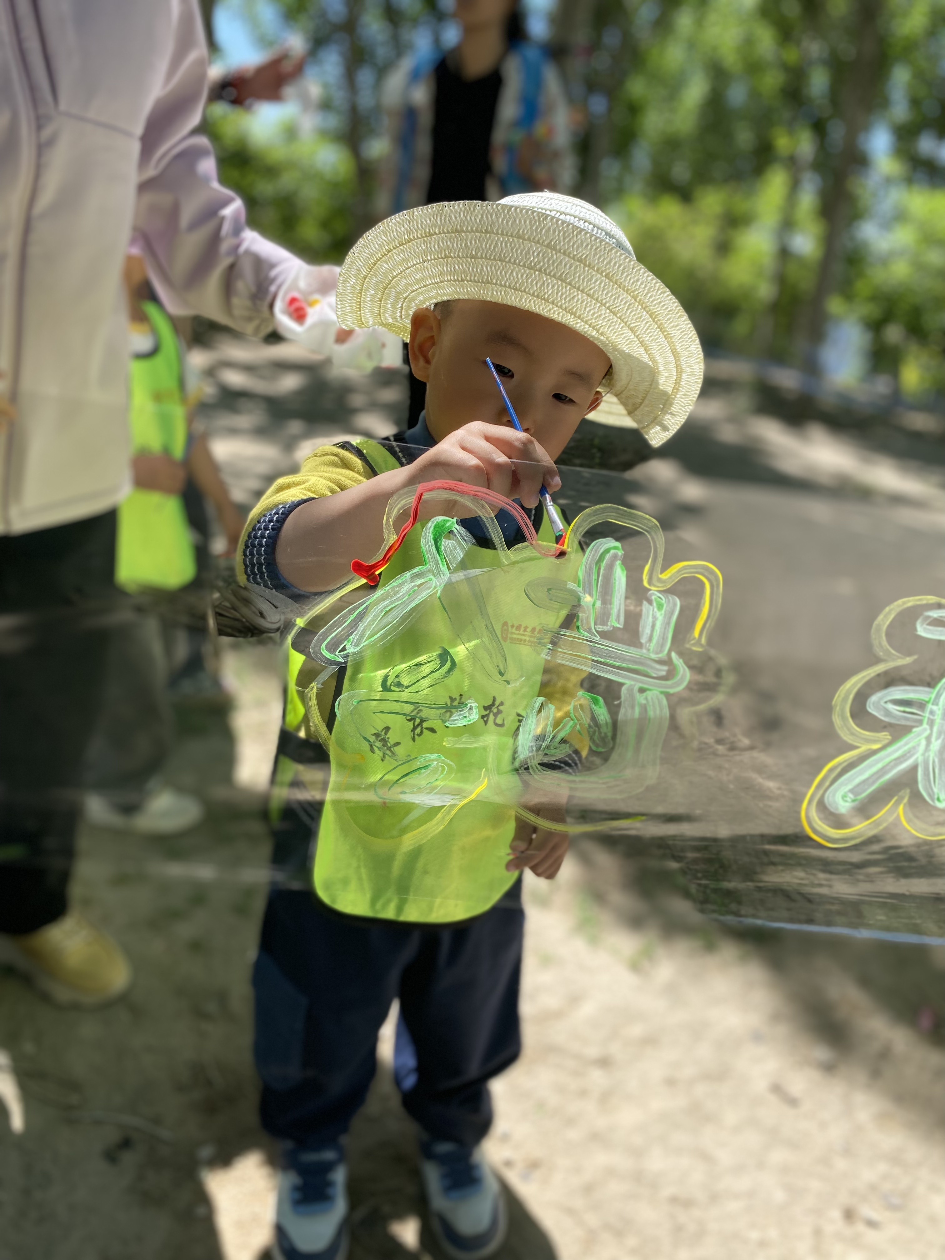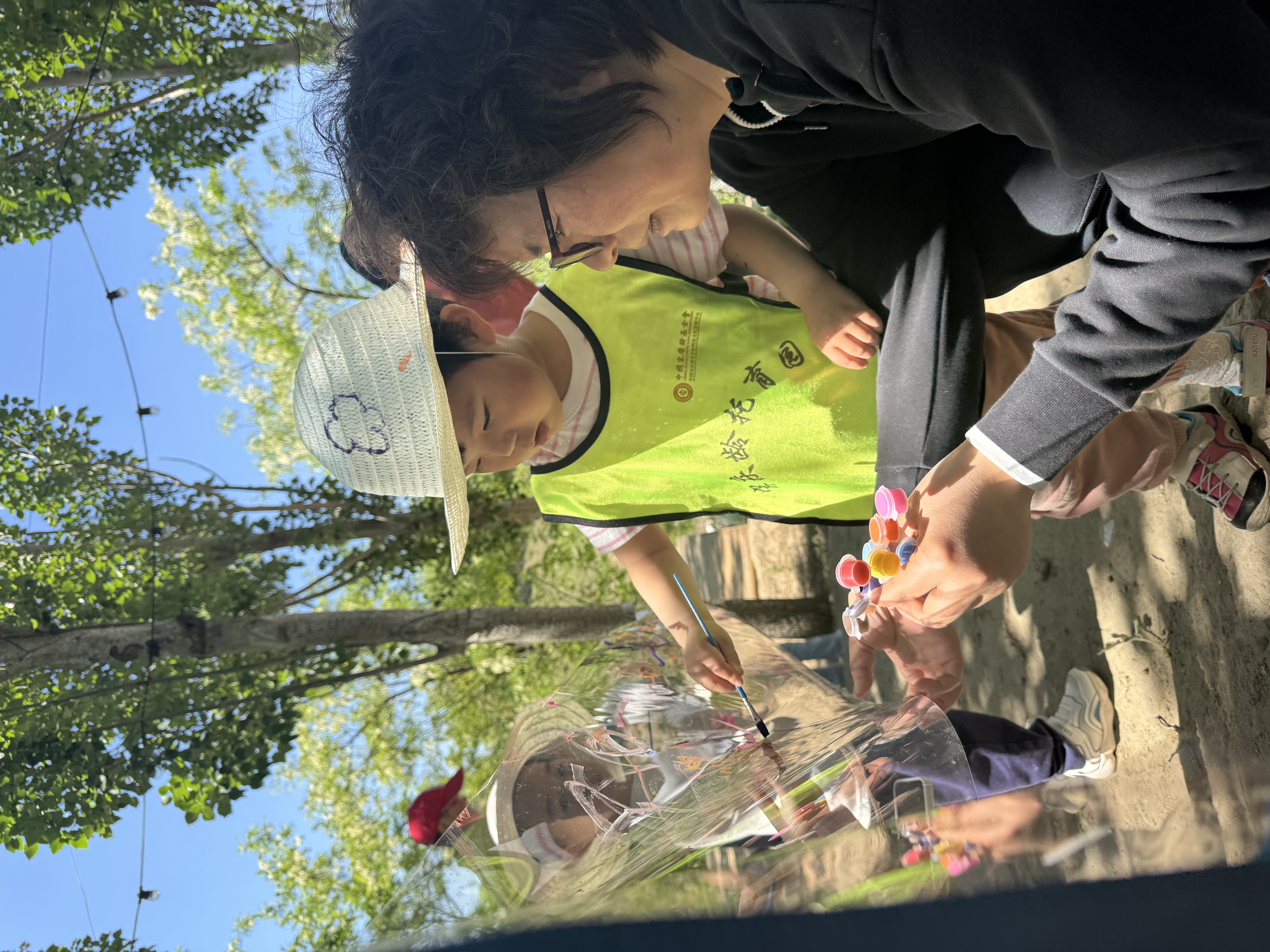 山顶树林间,宝贝们化身“小小画家”,将想象化作斑斓色彩。这场涂鸦不仅点燃了创意之火,尽显出自然大课堂最生动的一面。