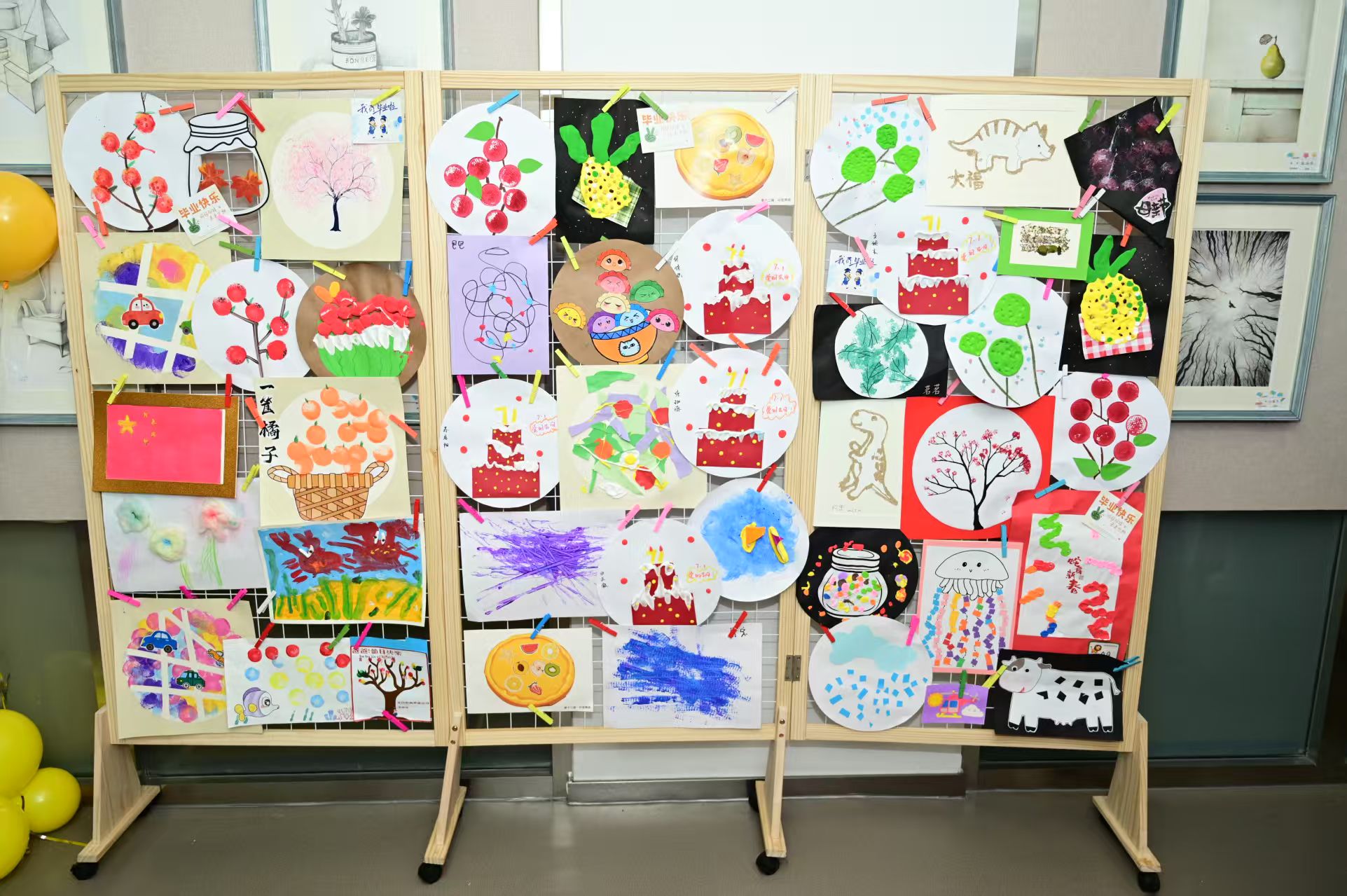 长廊里,宝贝们的创意手工、艺术涂鸦、黏土制作错落陈列。每一幅作品都充满了宝贝们的奇思妙想;每一幅作品都代表了宝贝们内心绚丽的小世界;每一幅作品都值得我们视若珍宝。艺术展不仅是对宝贝们艺术探索之旅的精彩回顾,更是自然美育、色彩探索的最好呈现。