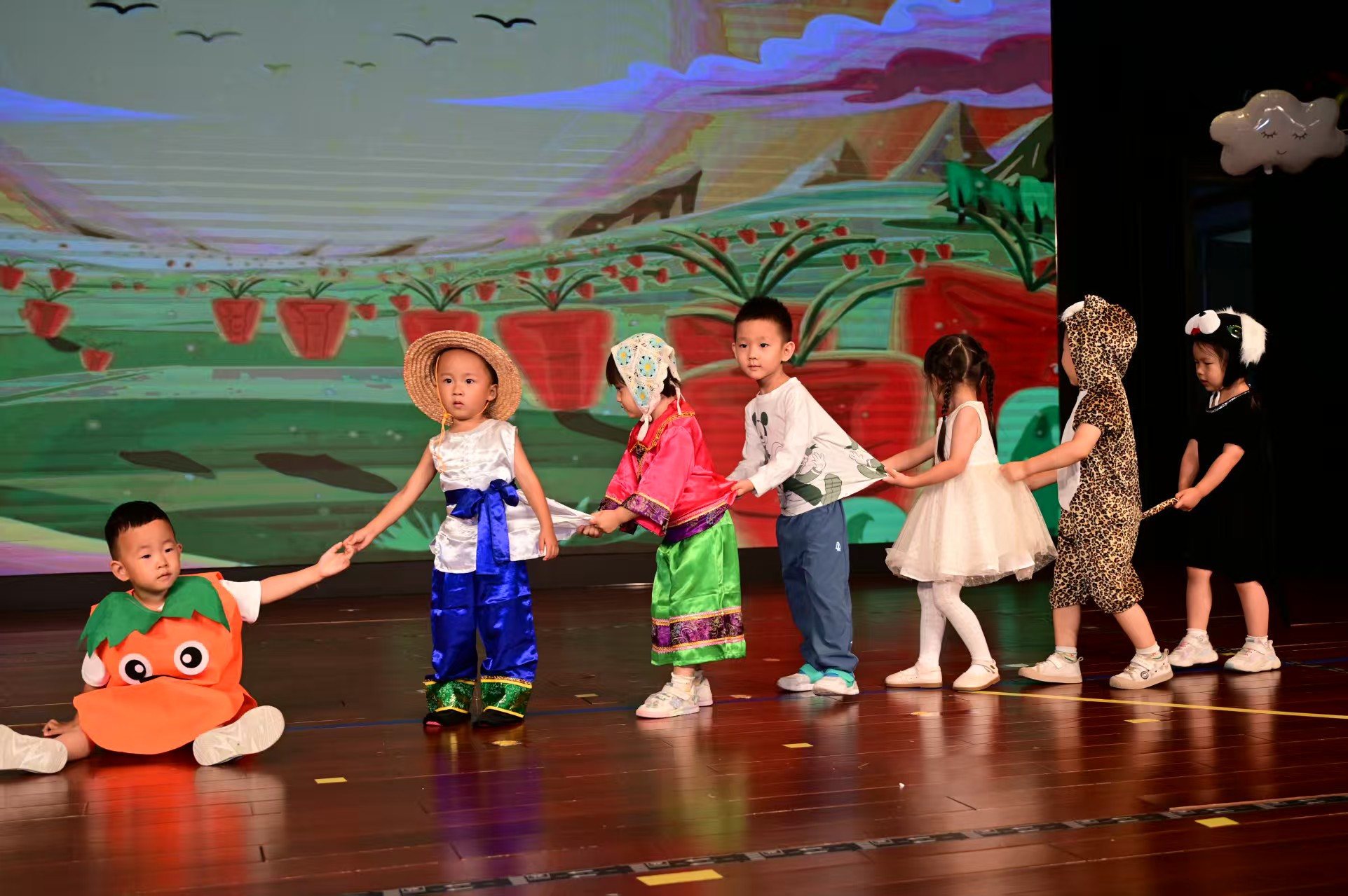 看,小松鼠班的宝贝们变身摇摆小黄鸭,萌趣早操乐开怀。小棕熊班的宝贝们踏着神秘脚步,森林动物舞起来。小狮子班的宝贝们《拔萝卜》齐心又协力,“One, two, three, pull!”口号响起来!小灰兔班的宝贝们跳进“冰激凌夏天”,甜蜜笑容惹人爱,每个节目都充满童真和欢乐,是萌宝们送给自己最好的成长礼物!