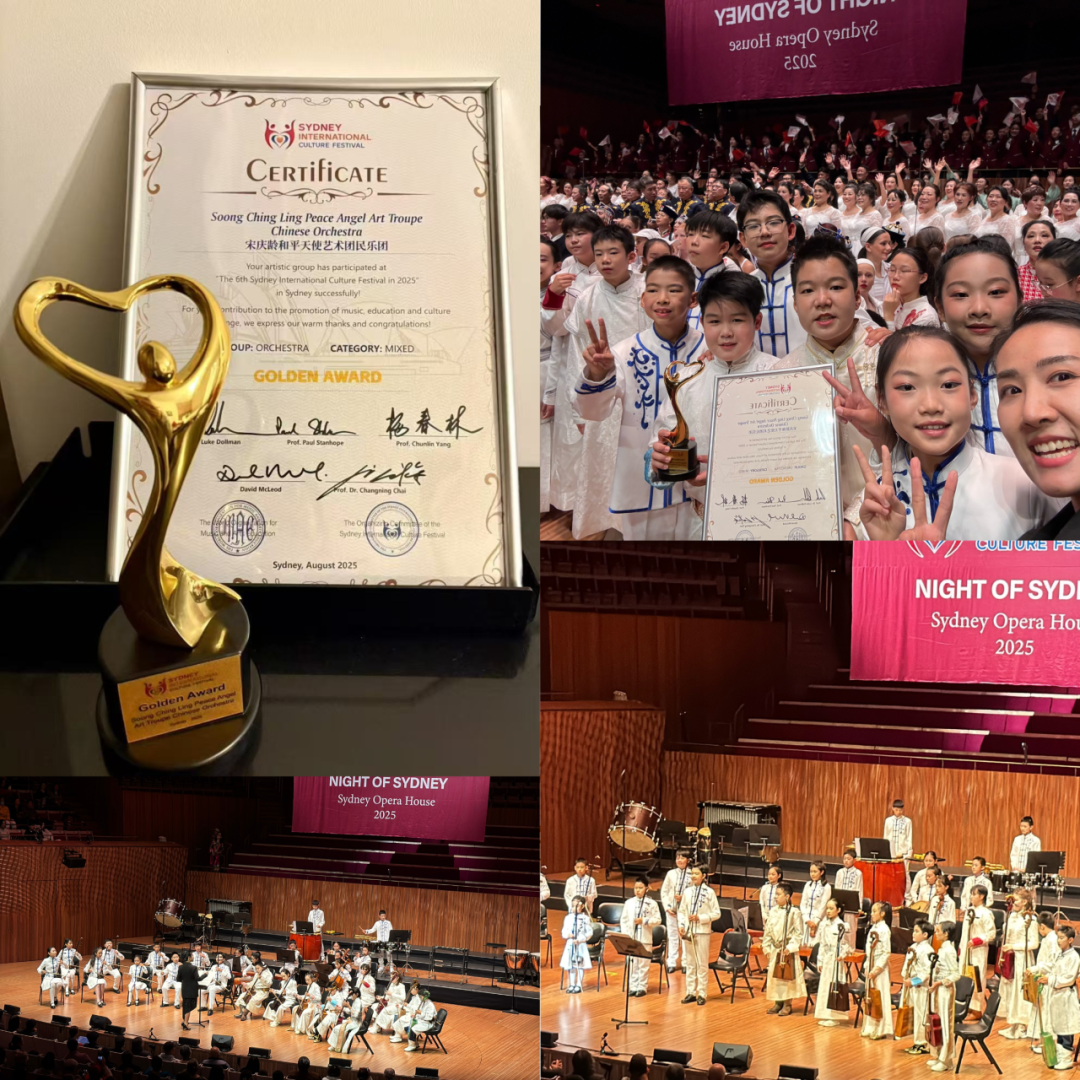 8月9日晚,第六届悉尼国际艺术节「悉尼之夜」颁奖盛典音乐会在世界级艺术地标悉尼歌剧院盛大举办。共有来自中国、澳大利亚、新西兰、汤加、德国五个国家的二十余支艺术团体联袂献艺。在众多参赛队伍中,宋庆龄和平天使艺术团民乐团凭借卓越表现,斩获金奖第一名!这无疑是对教育成果和艺术水平的高度认可。