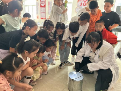 科学表演秀中“蓝豆豆博士”带领孩子们解锁科学的“魔法”,“茶水变色”实验中,清澈茶水瞬间变黑,孩子们瞪大双眼;探索光的折射与反射时,大家亲手用喷壶“抓”住彩虹;最令人兴奋的“干冰大炮”环节,白色云雾喷涌而出的瞬间,现场欢呼声此起彼伏。“原来科学不是枯燥的公式,像变魔术一样有趣!”体验结束后,一名孩子兴奋地表示,自己从此爱上了科学,未来想当科学家,“做这么酷的实验”。
