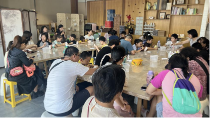 陶艺工坊里,17名孩子化身“小小陶艺家”,参与釉下彩绘制课程。老师从陶瓷艺术的千年历史讲起,细致讲解釉下彩的独特工艺,展示经典作品,让孩子们直观感受传统工艺的精美与文化底蕴。实践环节,孩子们挑选素烧陶坯和颜料,在老师指导下学习执笔、调色,从生疏到熟练,反复勾勒填色,最终完成独具个性的作品。“第一次做陶艺,虽然一开始总画不好,但慢慢就找到了感觉,还把作品带回家,特别有成就感!”一名孩子举着作品笑着说。