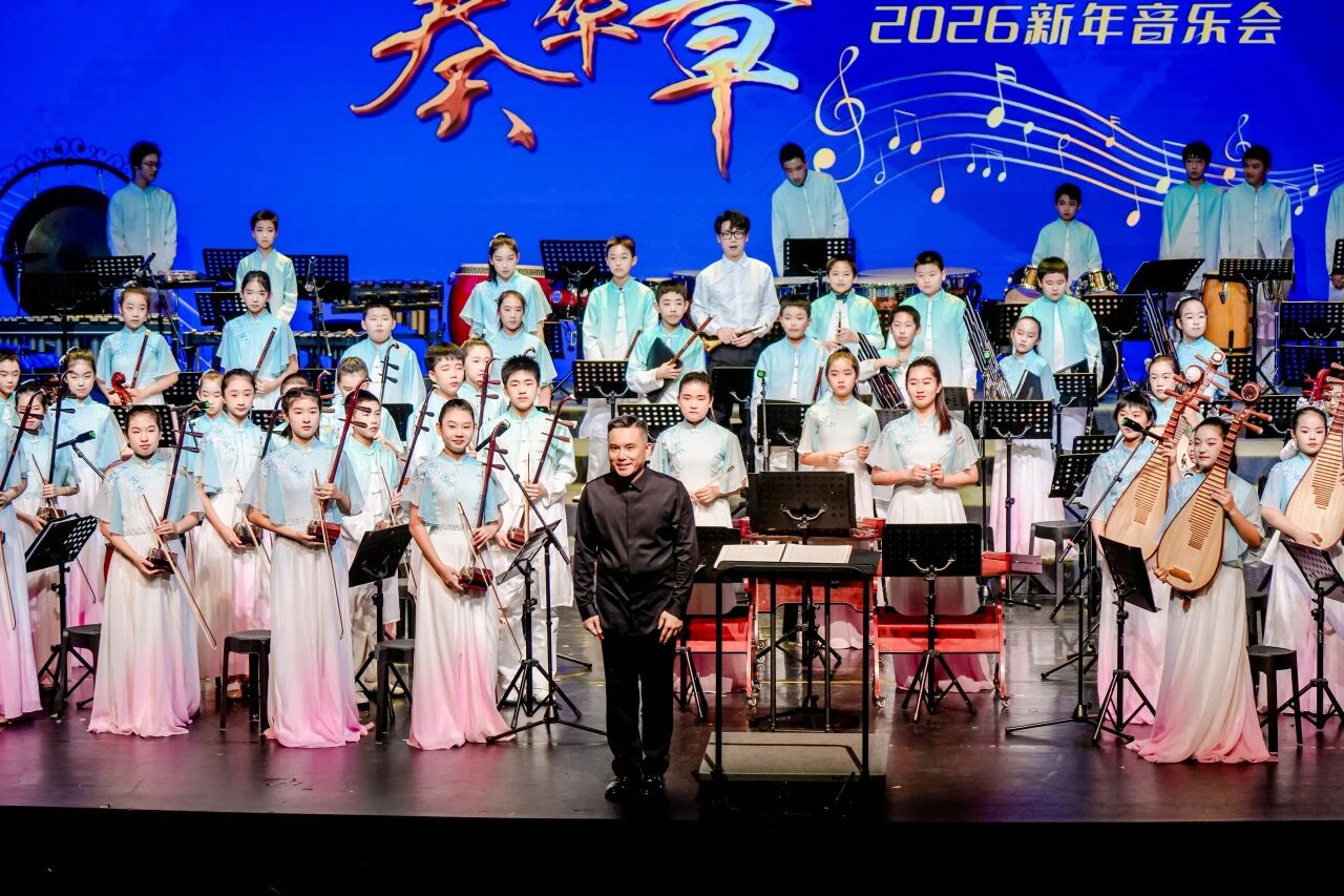 12月26日晚,“时代少年奏华章”宋庆龄和平天使艺术团2026新年音乐会圆满落下帷幕。这场音乐会融合了悠扬民乐与恢弘交响乐,朝气蓬勃的小团员用精湛的演奏、童心与热爱点亮新年的璀璨星光。