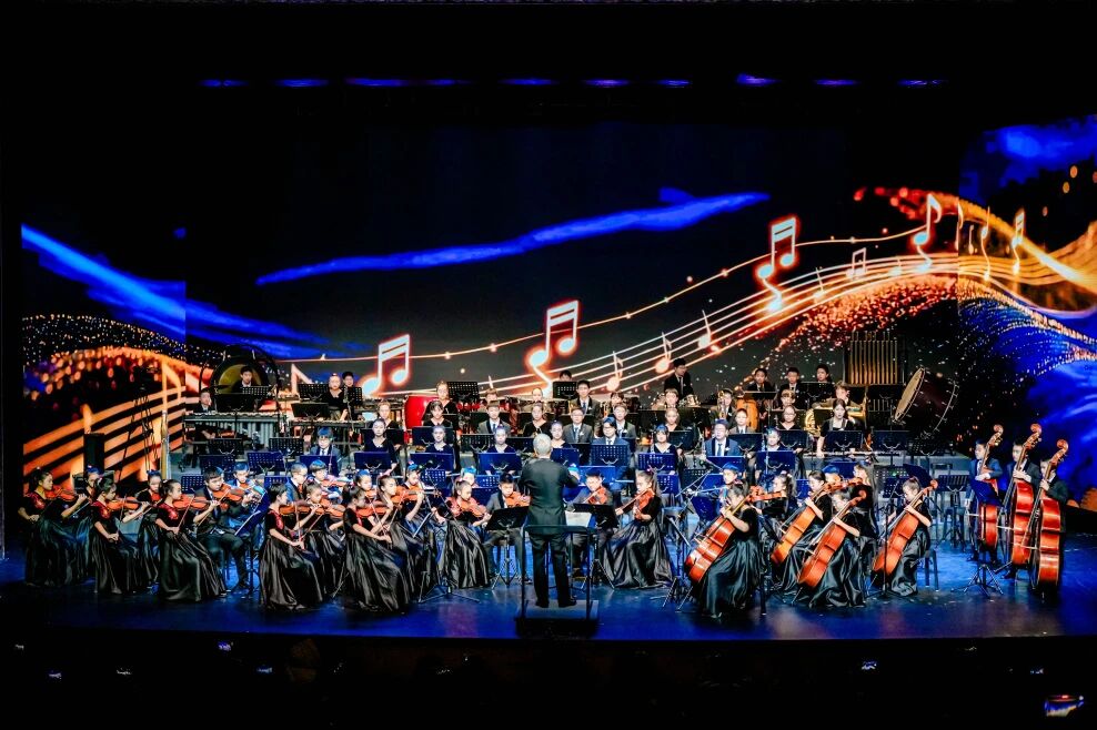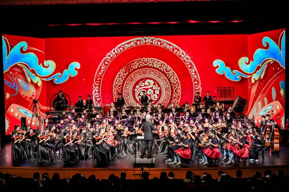 本次音乐会以“国风·寰宇·和鸣”为脉络,分为“九州华章”“时代交响”“点亮未来”三大篇章,层层递进、意境深远。从雄浑激昂的打击乐到婉转悠扬的弹拨乐,从经典西洋交响乐到中西合璧的跨界合奏,一首首精心编排的曲目,将观众带入新年喜庆祥和的氛围之中。