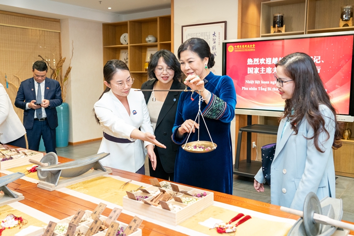 4月14日下午,越共中央总书记、国家主席夫人吴芳璃一行参访中国宋庆龄青少年科技文化交流中心。中国宋庆龄基金会党组书记、副主席沈蓓莉,中共中央对外联络部副部长孙海燕陪同。